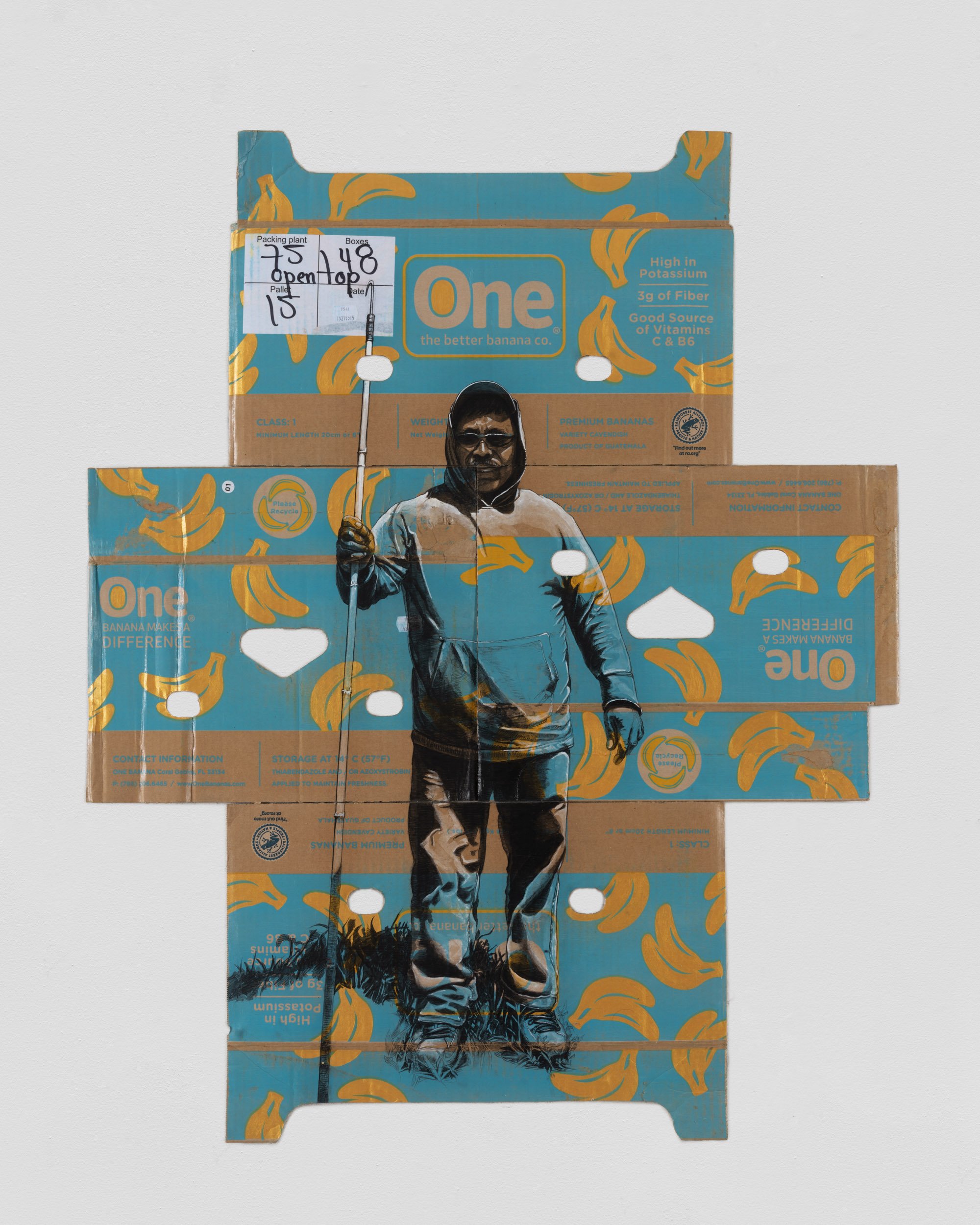 Charlie James Gallery is delighted to present a solo exhibition of new works by gallery artist Narsiso Martinez for the 2023 edition of The Armory Show from September 8-10, 2023. This is the first solo presentation of works by Narsiso in New York City. Narsiso Martinez’s drawings and mixed media installations include multi-figure compositions set amidst agricultural landscapes. Drawn from his own experience as a farmworker, Martinez’s work focuses on the people performing the labors necessary to fill produce sections and restaurant kitchens around the country. Martinez’s portraits of farmworkers are painted, drawn, and expressed in sculpture on discarded produce boxes collected from grocery stores. In a style informed by 1930s-era Social Realism and heightened through use of found materials, Martinez makes visible the difficult labor and onerous conditions of the “American farmworker,” itself a compromised piece of language owing to the industry’s conspicuous use of undocumented workers.